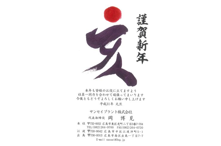 新年、明けましておめでとうございます。 平成最後の年となりました。弊社にとっては設立29年目の年となります。 本年も皆様のお役に立てますよう精進してまいります。 どうぞよろしくお願い申し上げます。