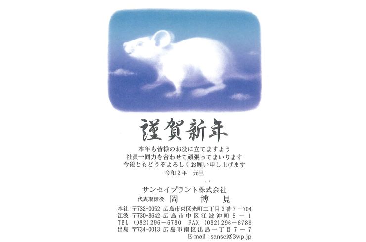 明けましておめでとうございます。 2020年(令和2年)、本年は弊社にとって設立30周年の節目となります。 これからもお客様と協力して、より良いモノづくりができるよう邁進してまいります。 本年もどうぞよろしくお願い申し上げます。